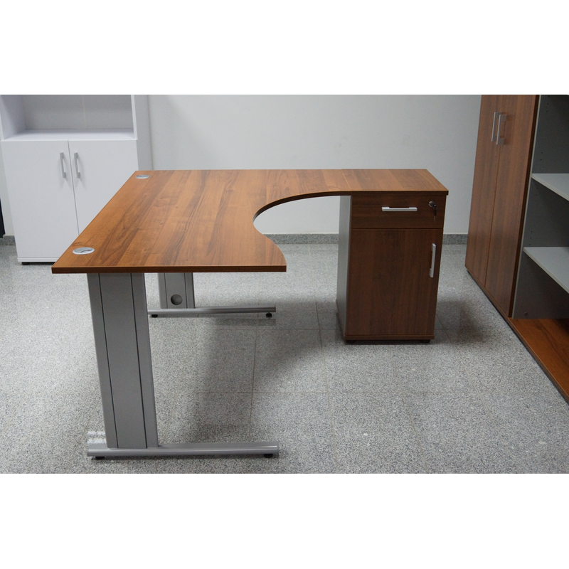 Skladbiurowy_pl oferuje biurko narożne w kolorze orzech ciemny + szary.